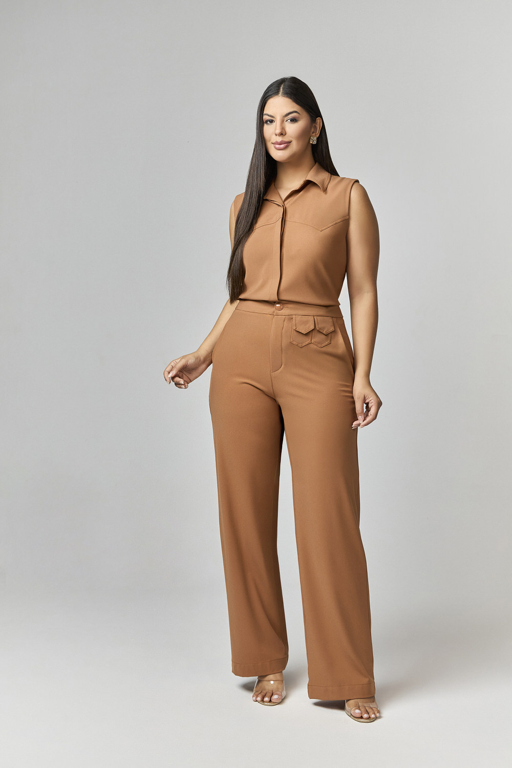 CALCA PANTALONA COM DETLAHE BOLSOS E BOTOES