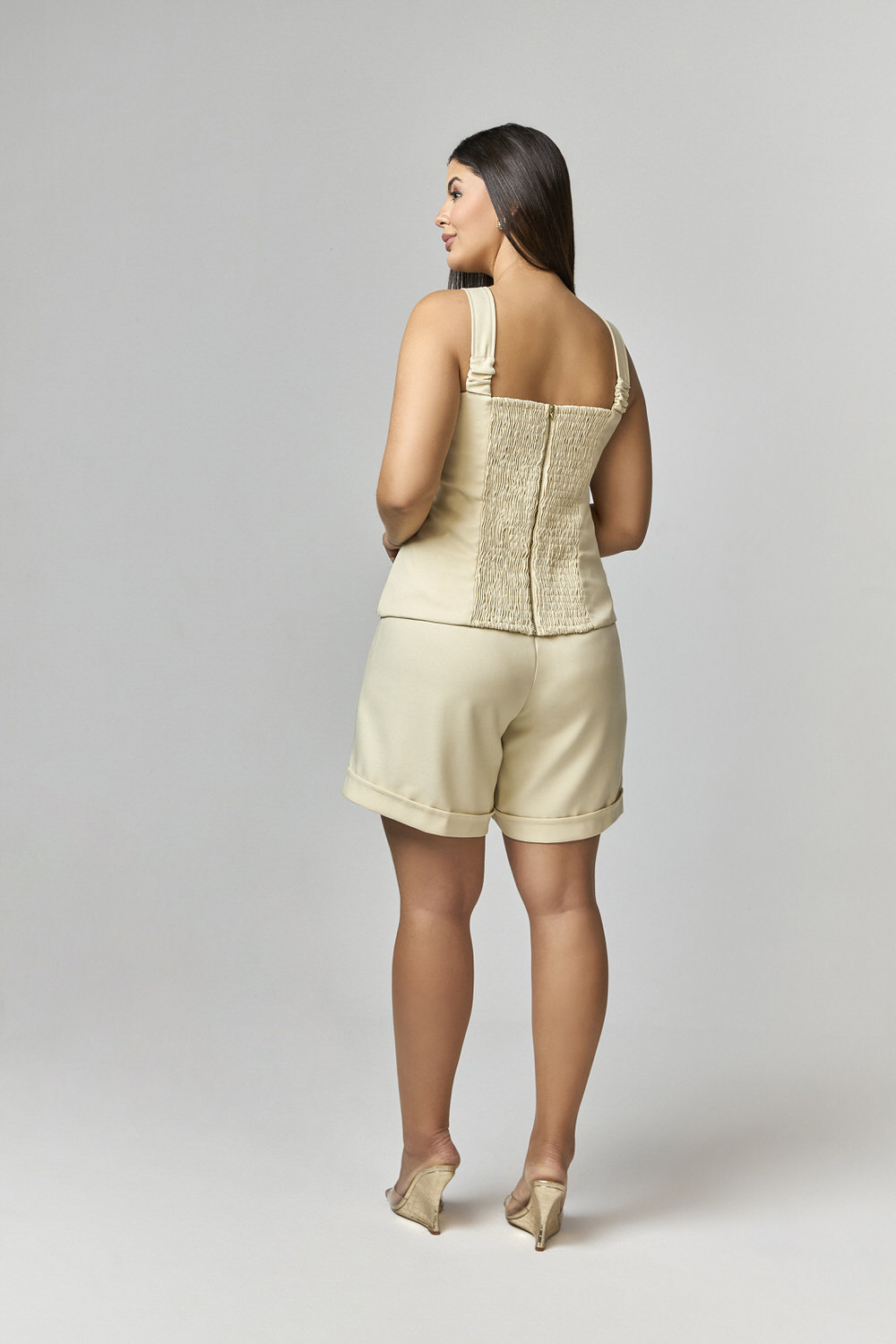 CONJUNTO CAMISA COM CROPPED E SHORT DETALHE LISTRAS