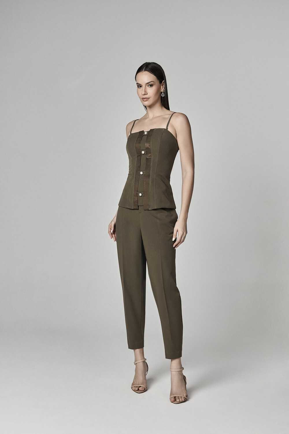 CONJUNTO SEMI CROPPED E CALCA PANTALONA COM DETALHE PREGAS