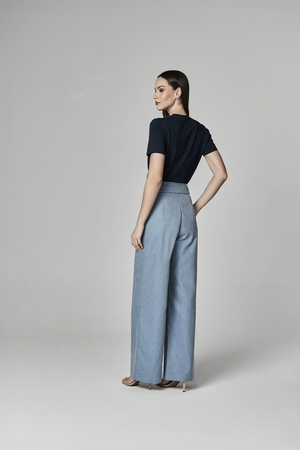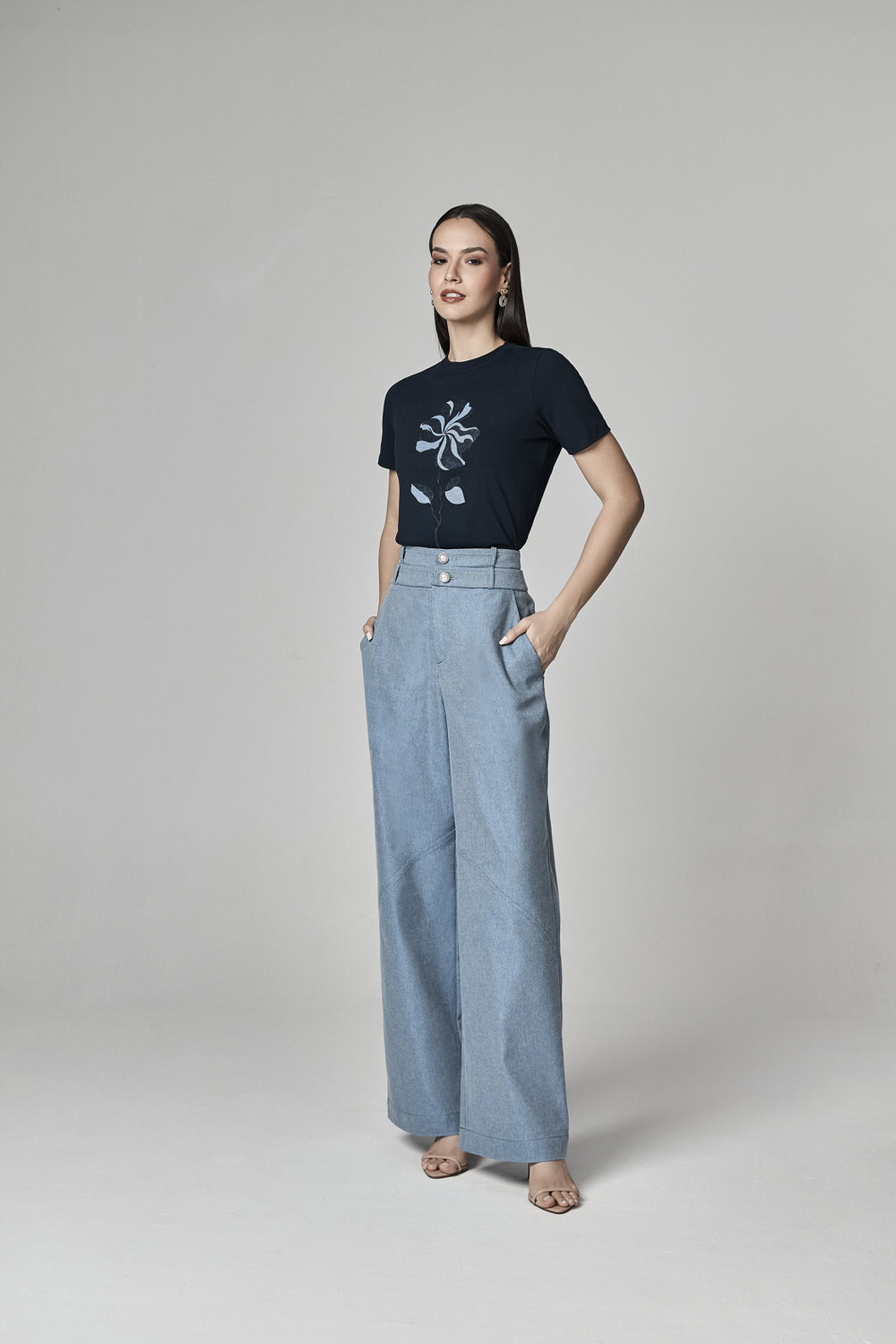 CALCA PANTALONA COM VIVO E DETALHE BOLSOS