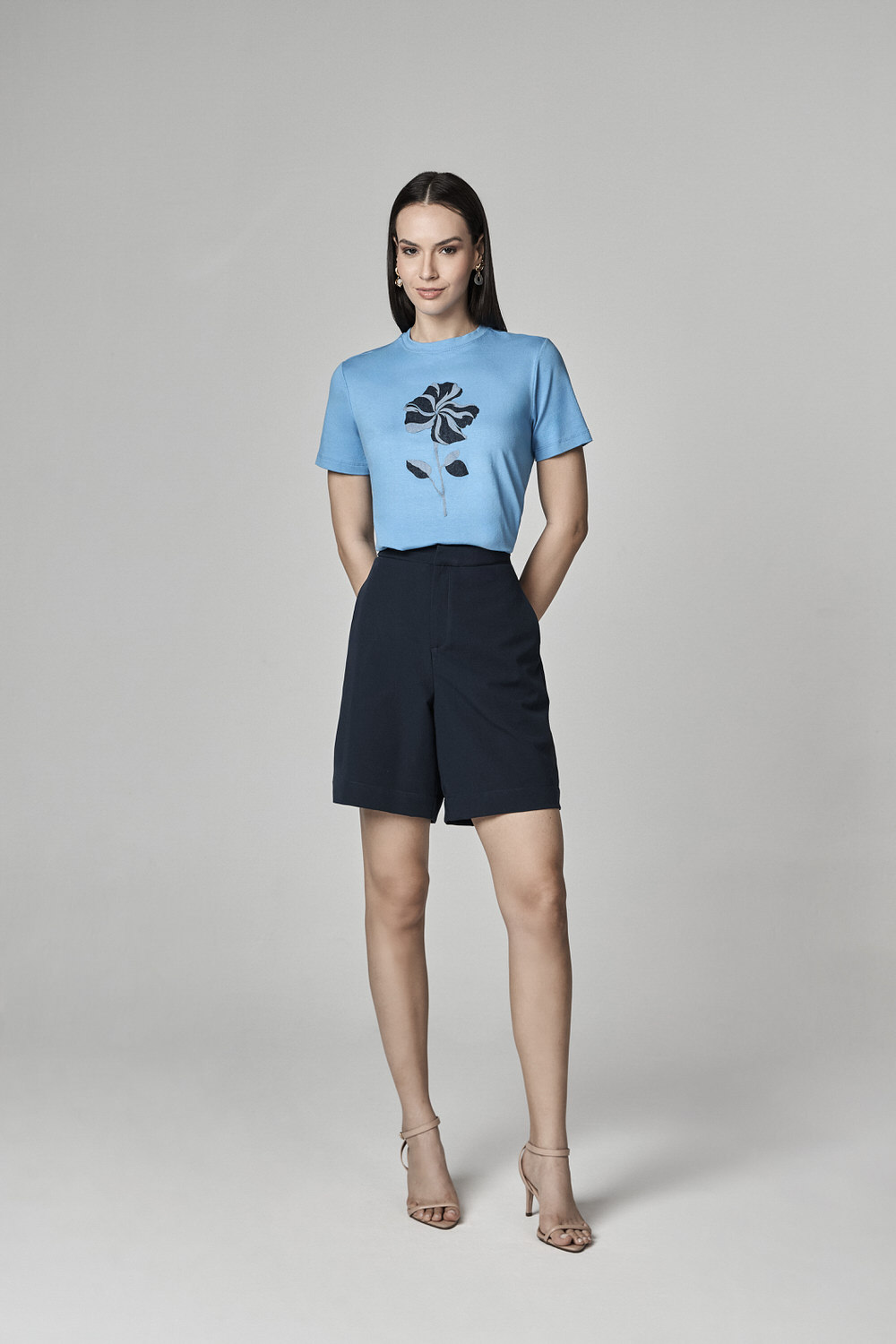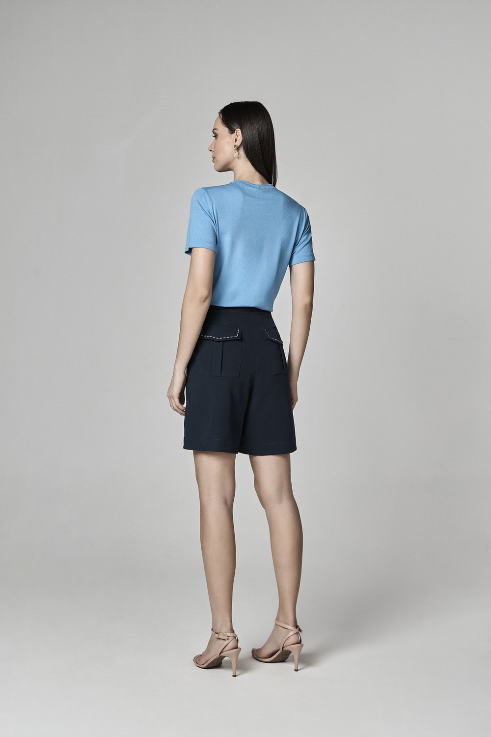 SHORT JEANS COM DETALHE PESPONTOS E REBITES