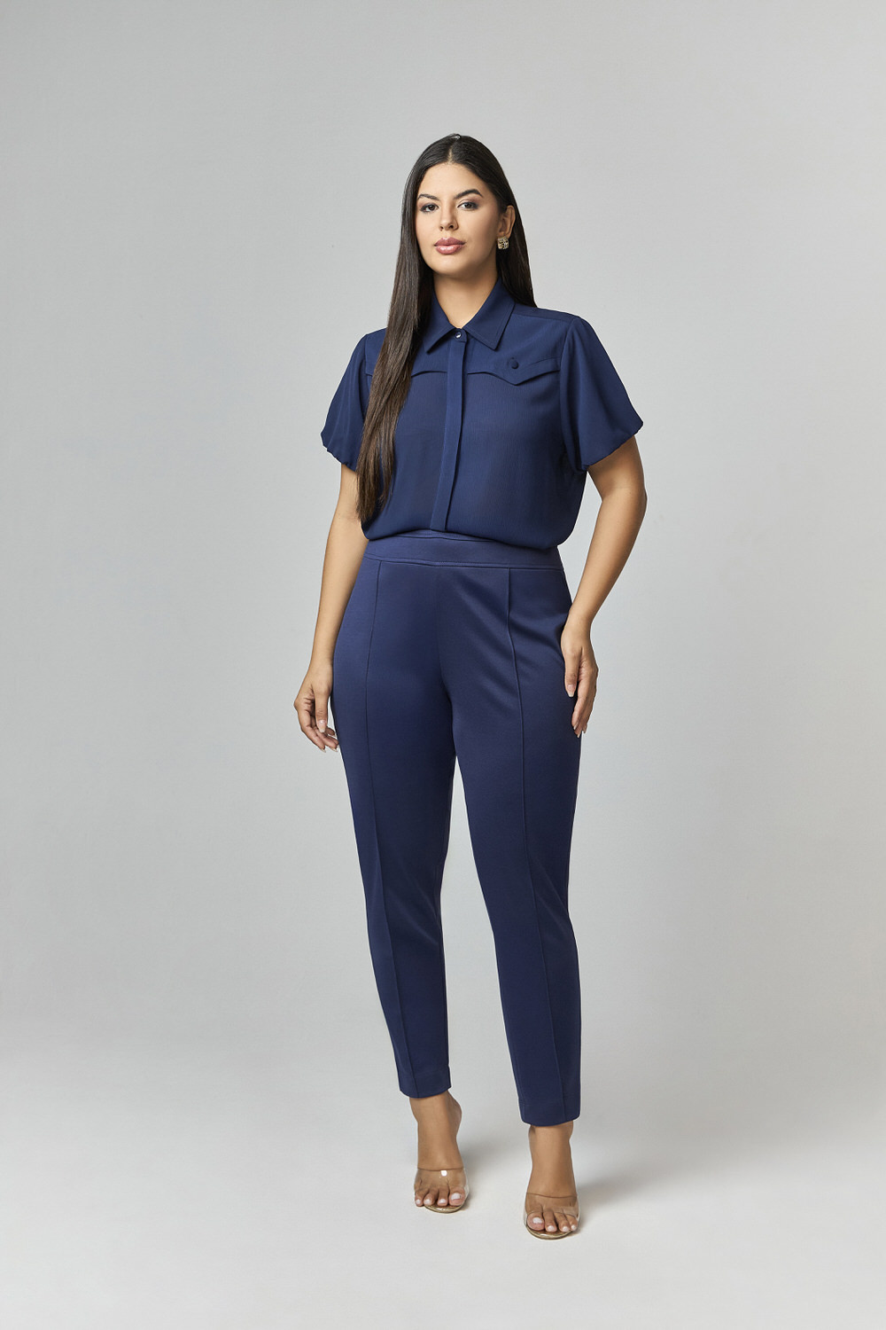 CALCA ALFAIATARIA COM PESPONTOS E DETALHES ILHOS