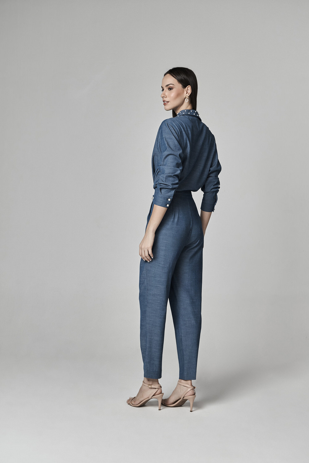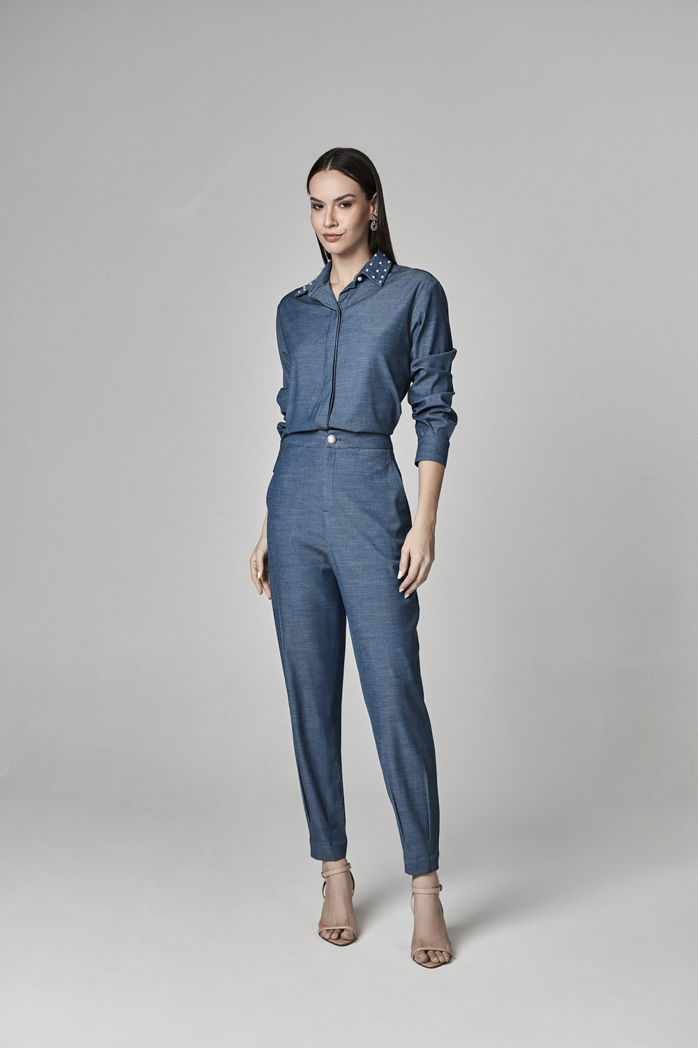CONJUNTO SEMI CROPPED E CALCA PANTALONA COM DETALHE PREGAS