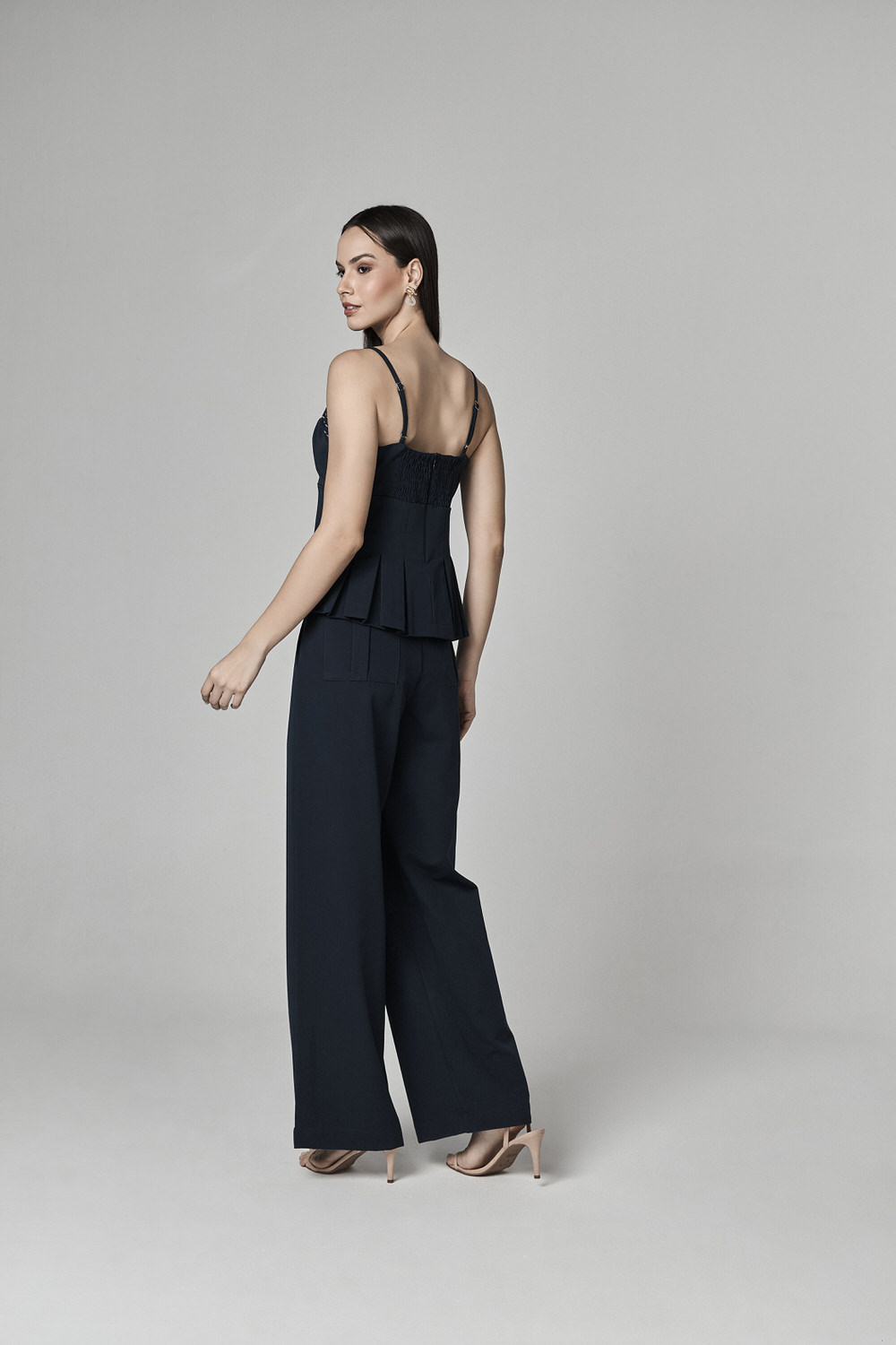 CALCA PANTALONA COM VIVO E DETALHE BOLSOS