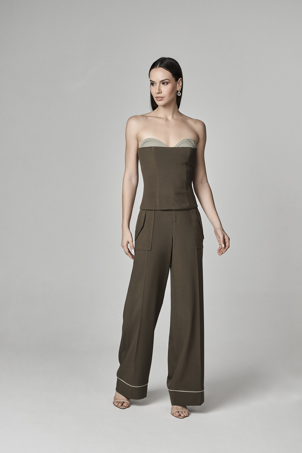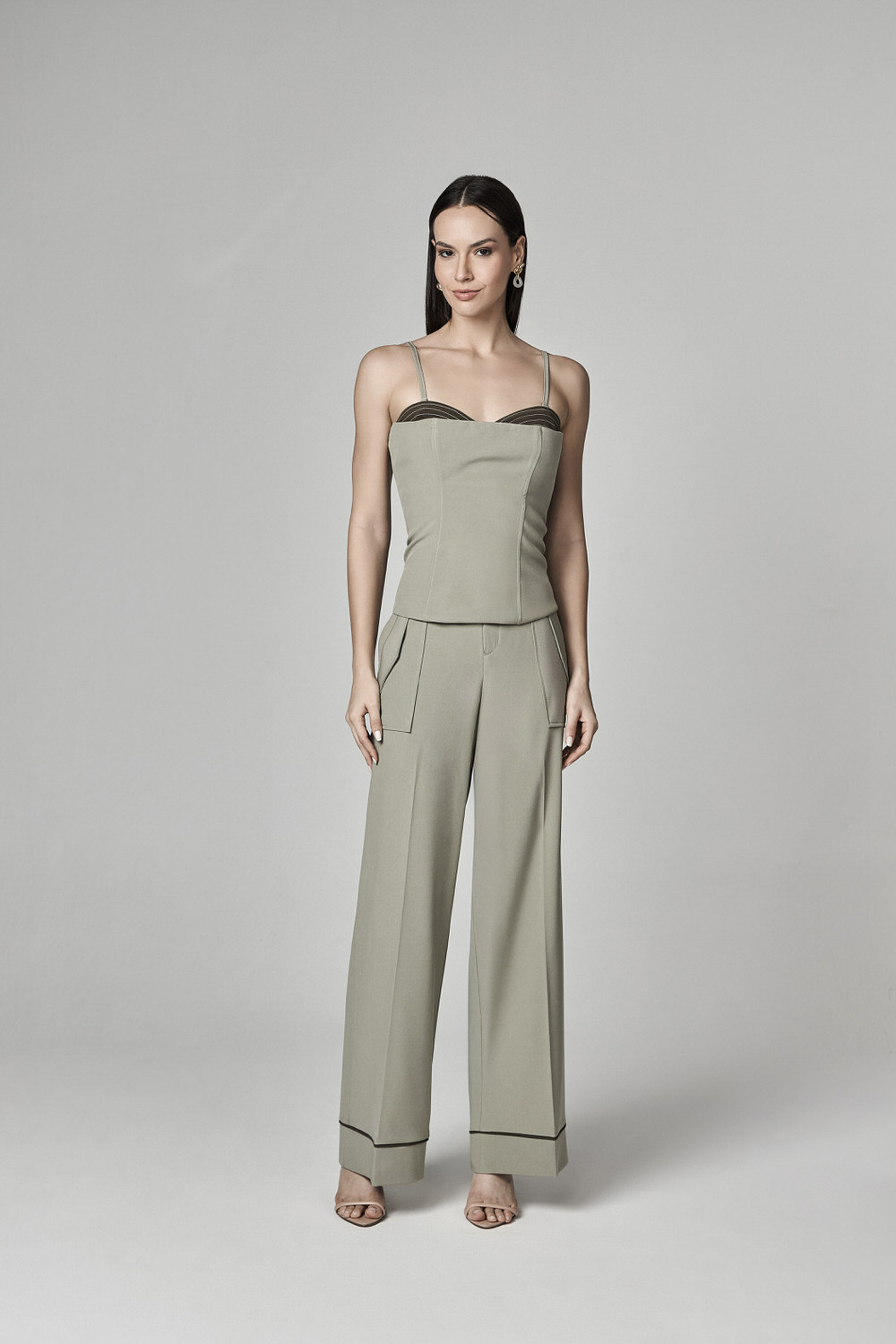 CALCA PANTALONA COM VIVO E DETALHE BOLSOS
