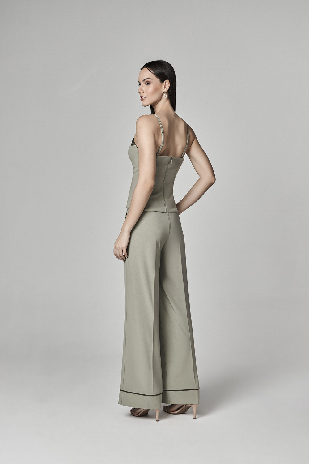 CALCA ALFAIATARIA ACETINADA COM DETALHE NERVURAS COS