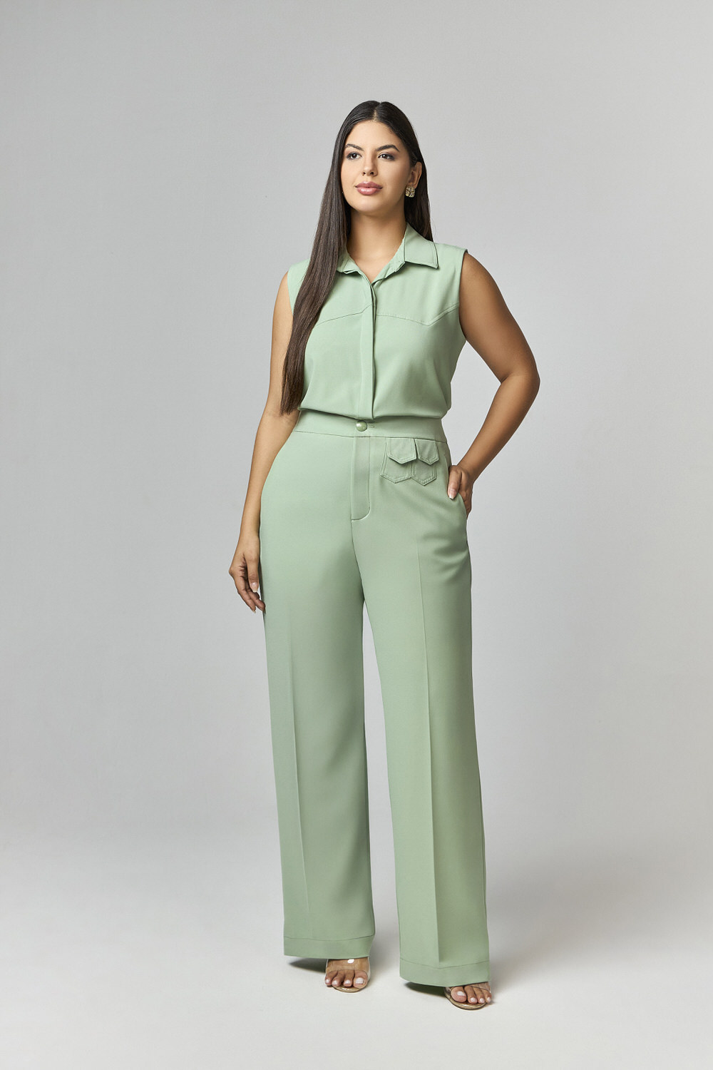 CALCA ALFAIATARIA COM DETALHE BOTOES E CINTO
